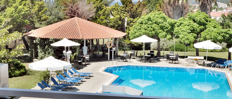 Hotelul se afla intr-o zona linistita inconjurata de verdeata din satuk Nikiti, golful Toroneos.
