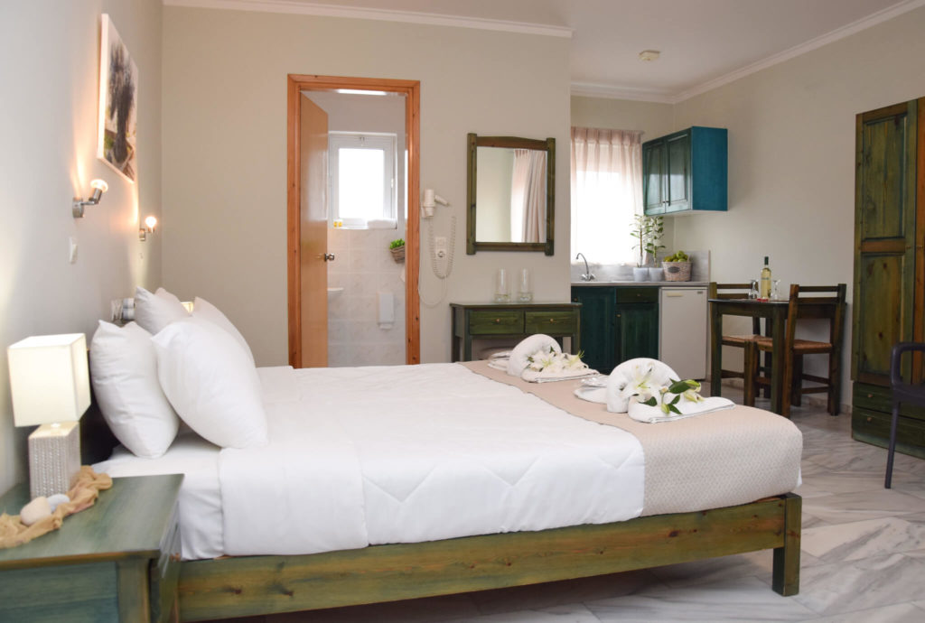 Apartamentele si studiourile sunt complet echipate, au in dotare grup sanitar propriu, aer conditionat, chicineta, frigider, TV SI WI-FI gratuit. Toate camerele hotelului au vedere la mare.