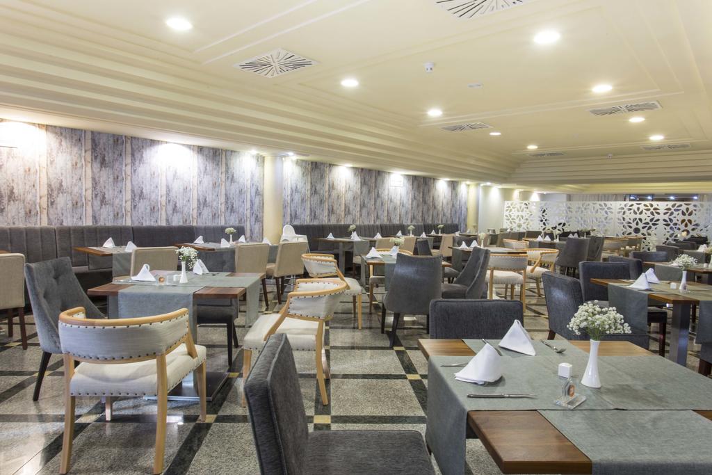 Hotelul ofera mic dejun bufet (08:00-11:00) sau demipensiune (cina bufet, 18:30-21:30) in restaurantul principal. Hotelul mai are un restaurant A la carte (18:30-22:00), un bar principal (11:00-24:00), un snack bar langa piscina (13:00-16:00).