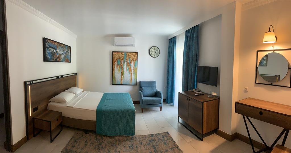 Camerele de la Bitez Garden Life au mobilier modern, A/C, Wi-Fi, TV satelit, minibar, baie cu articole de toaletă gratuite şi un uscător de par