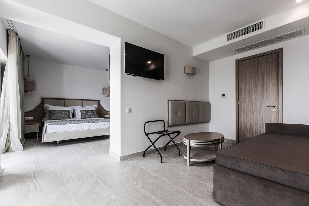 Camerele decorate modern au baie cu dus, uscator de par, halat de baie, TV, acces gratuit la internet WIFI, telefon, aer conditionat, mini bar, seif, balcon. Camerele duble au 18-21 mp si capacitate maxima de 2 adulti si 1 copil sau 2 adulti si 2 copii. Camerele tip Suite au 32 mp, doua incaperi cu un pat dublu, un pat pliant si o canapea, avand capacitate maxima de 2 adulti si 2 copii. Camerele tip Family Suite au 44 mp, sunt formate din 2 incaperi cu un pat dublu, 2 paturi single si o canapea dubla, mini bucatarie, terasa cu sezlonguri, vedere spre mare si au capacitatea maxima de 3 adulti si 1 copil.