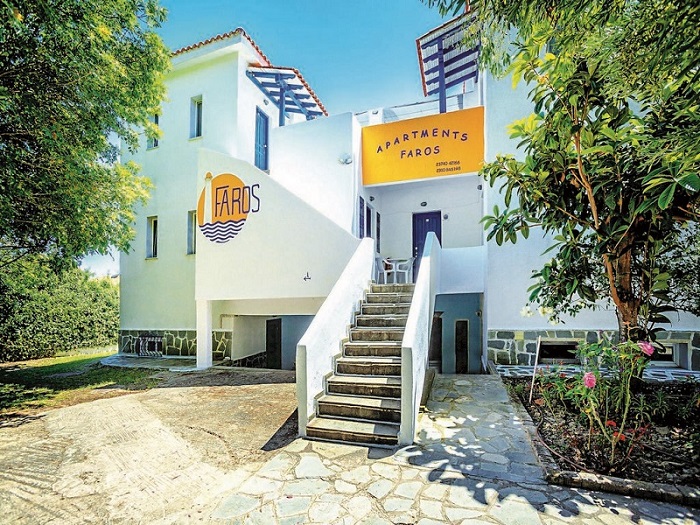 Scor Booking.com : 8.3 Foarte Bine Apartamentele Faros sunt construite pentru a oferi un mediu confortabil și prietenos pentru vacanțele ideale de vară. Se află la 100 m de mare, înconjurat de o zonă verde de măslini și pini, lângă super piețe și taverne grafice grecești în inima satului Possidi. Incepand cu 01.01.2018 a fost introdusa taxa locala. In functie de clasificarea unitatii de cazare, aceasta variaza intre 0.5eur – 4eur/ camera/ noapte si se va achita de catre turisti la fata locului!Regulament