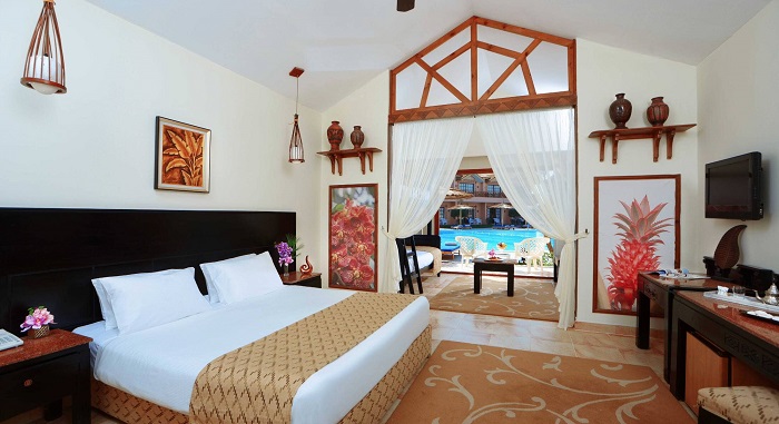 Camerele sunt confortabile, fiind dispuse in bungalouri turistii au parte de intimidate, sunt cu vedere la gradina sau piscina, dotate cu aer conditionat, TV. mini bar si seif.