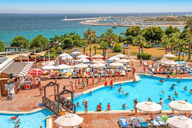 Bine: 7.0 Booking.com Hotelul Didim Beach Resort este situat la 1km de centrul orasului Altinkum, 90km de aeroportul din Bodrum, pe plaja in Didim.