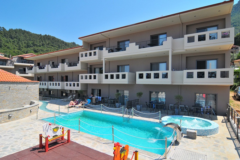 Complexul format din 5 cladiri se afla in Skala Potamia, la 300 m de plaja si foarte aproape de Golden Beach. Hotelul cu 2 piscine conectate printr-un canal cu apa si o cascada ofera o gama de servicii potrivite pentru familiile cu copii. Incepand cu 01.01.2018 a fost introdusa taxa locala. In functie de clasificarea unitatii de cazare, aceasta variaza intre 0.5eur – 4eur/ camera/ noapte si se va achita de catre turisti la fata locului!Regulament