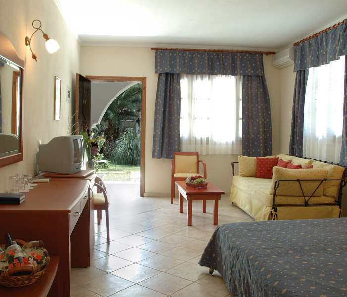 Toate camerelesunt decorate cu gust si au: aer conditionat, balcon sau terasa, TV satelit, telefon, mini frigider, baie cu cada si dus, uscator de par, seif (contra cost, la receptie). Camera dubla are capacitate maxima 2 adulti si 1 copil. Camera dubla Superior are capacitate maxima de 3 persoane. Camera Family si camera Junior Suite are capacitate maxima de 2 adulti si 2 copii sau 3 adulti si 1 infant. Camera Luxury (Family) Suite este formata din 2 dormitoare separate, o baie cu cada si o baie cu dus, capacitatea maxima fiind de 4 adulti