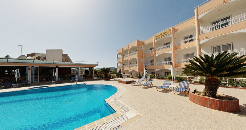 Hotelul este la 5 minute pe jos față de plajă. Acest complex înconjurat de o grădină încântătoare cu trandafiri se află la 400 m de plajă și la 5 minute de mers pe jos de centrul stațiunii Faliraki.