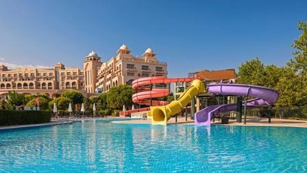 Hotelul dispune de restaurant principal, 4 restaurante A la carte, 6 baruri, 3 piscine exterioare, piscina interioara (semi-olimpica), topogane de apa, cabinet medical, coafor, centru comercial, spalatorie, schimb valutar, parcare, internet Wireless - gratuit pe teritoriul hotelului, sauna, jacuzzi, baie turceasca, sala fitness, program de animatie, discoteca, tenis de masa, 4 terenuri de tenis, masaj, biliard, piscina cu topogane pentru copii, kids-club. Plaja este proprie cu nisip.