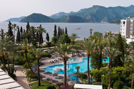 D-Resort Grand Azur Marmaris a fost complet renovat în 2013, fiind situat într-o grădină tropicală, la câțiva pași de Marea Mediterană. Complexul oferă o zonă de plajă privată și o piscină mare în aer liber cu terasă cu şezlonguri.